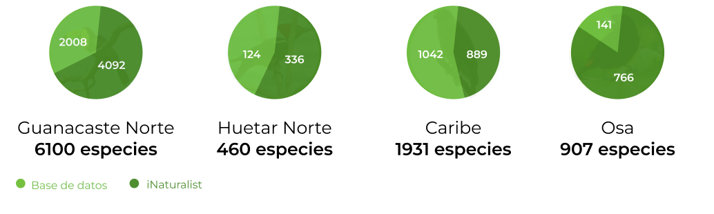 Uniendo bases de datos por medio de cámaras trampa y datos de iNaturalist, se han podido contabilizar casi 10 mil registros en las zonas de Guanacaste Norte, Huetar Norte, Caribe y Osa.